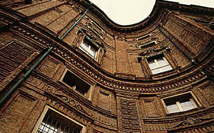 Die Bauarbeiten begannen 1679 und endeten 1684, und entstand ein Kunstwerk des piemontesischen Barock, mit einem U-förmigen Umriss und einer besonderen architektonischen Struktur. Von einem zylinderförmigen Turm, der in der Fassade ein wenig zurücktritt, gehen die beide Seitenflüge aus, die dann einen eckigen, geschlossenen Hof bilden. Die Backsteine sind vollkommen abgerundet und das Bindungsmaterial ist auch Terrakottapulver, was dann ein einheitliches und leicht modellierbares Baumaterial gibt.